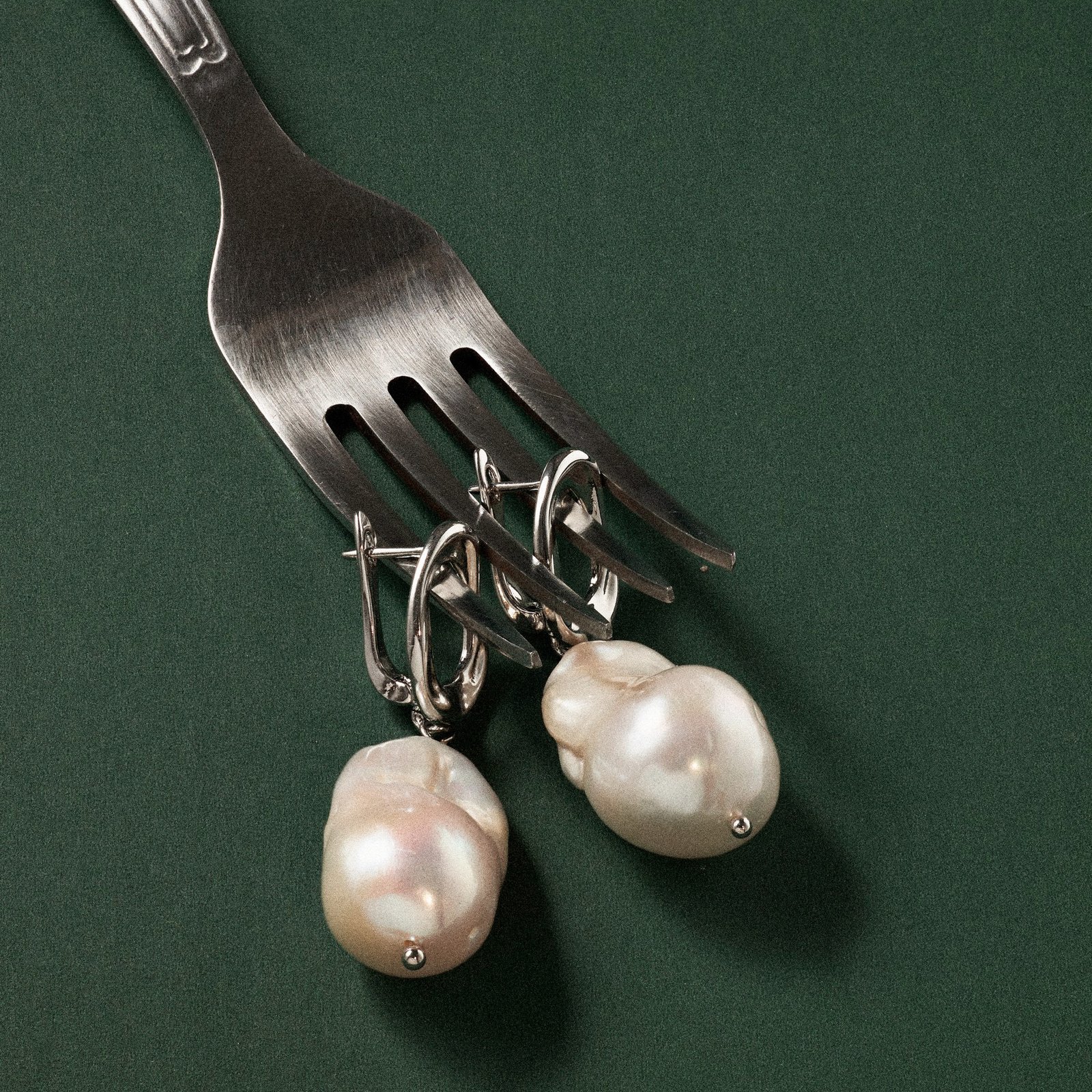 Cercei eleganți cu perle baroc albe si furnitură din metal medicinal inoxidabil.